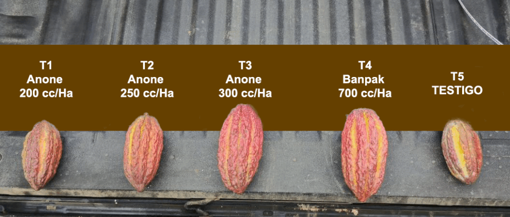 En general, las dosis crecientes de ANONE CPA™ mostraron una relación directa entre dosis y rendimiento, consolidando su eficacia como solución nutricional avanzada para cacao.