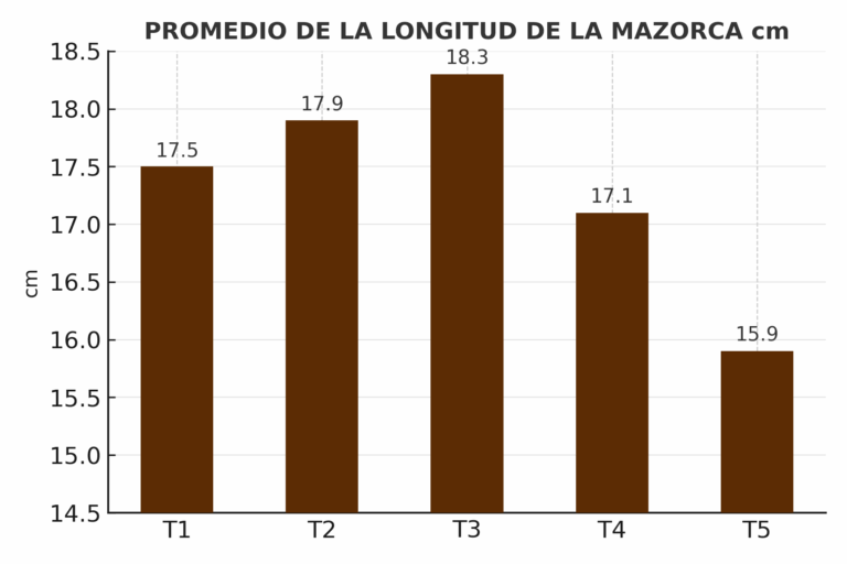 - Mayor longitud promedio de mazorca (18.3 cm) frente al testigo (15.9 cm).