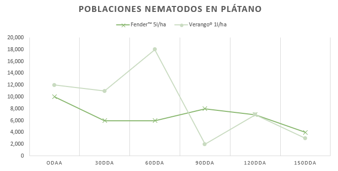 En zonas productoras de plátano en Valle Lirio, Retalhuleu (Guatemala), se evaluó la eficacia del nematicida botánico Fender™ de ExcelAg frente a un programa convencional basado en Verango®.