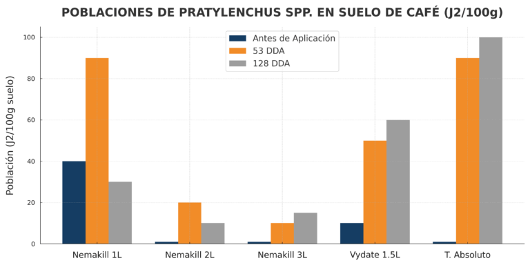 El estudio demostró que Nemakill™ es una solución orgánica altamente efectiva para el manejo de nematodos fitoparásitos en café arábico, superando los resultados del referente químico y contribuyendo al mismo tiempo a la salud del suelo y la sostenibilidad de la finca.